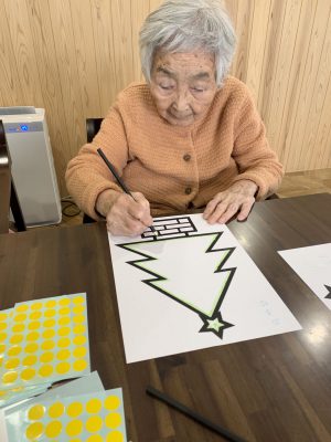 本日はシールでクリスマスツリーの絵に