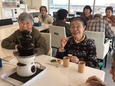 フルーツやプチシュー、マシュマロなどのスイーツにチョコレートをくぐらせて・・・❤