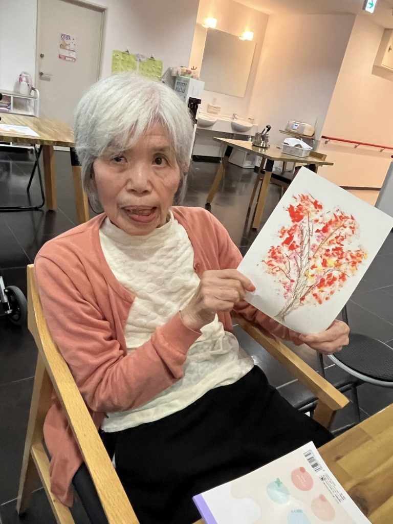 スタンプを押して紅葉を表現しております。
