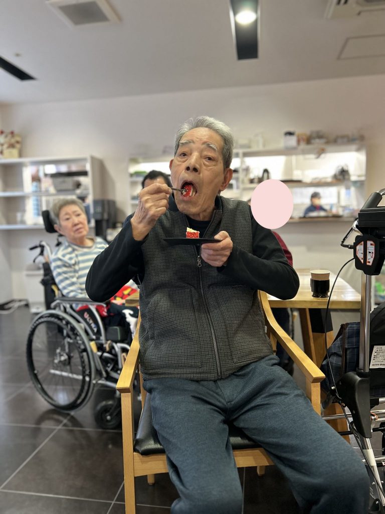 『あーーーーん🍰』と大きくお口を広げてケーキをパクリ‼️