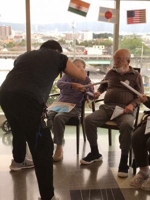 紅白チームに分かれて… 第1戦目はわっか渡しリレーです🎉